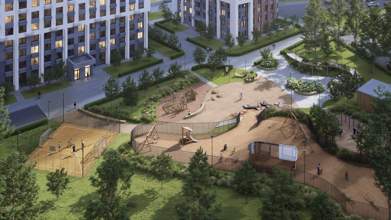 Мы создаем общественное пространство вокруг комплекса с точками притяжения и активностями, что бы весь досуг семьи мог проходить рядом с домом.