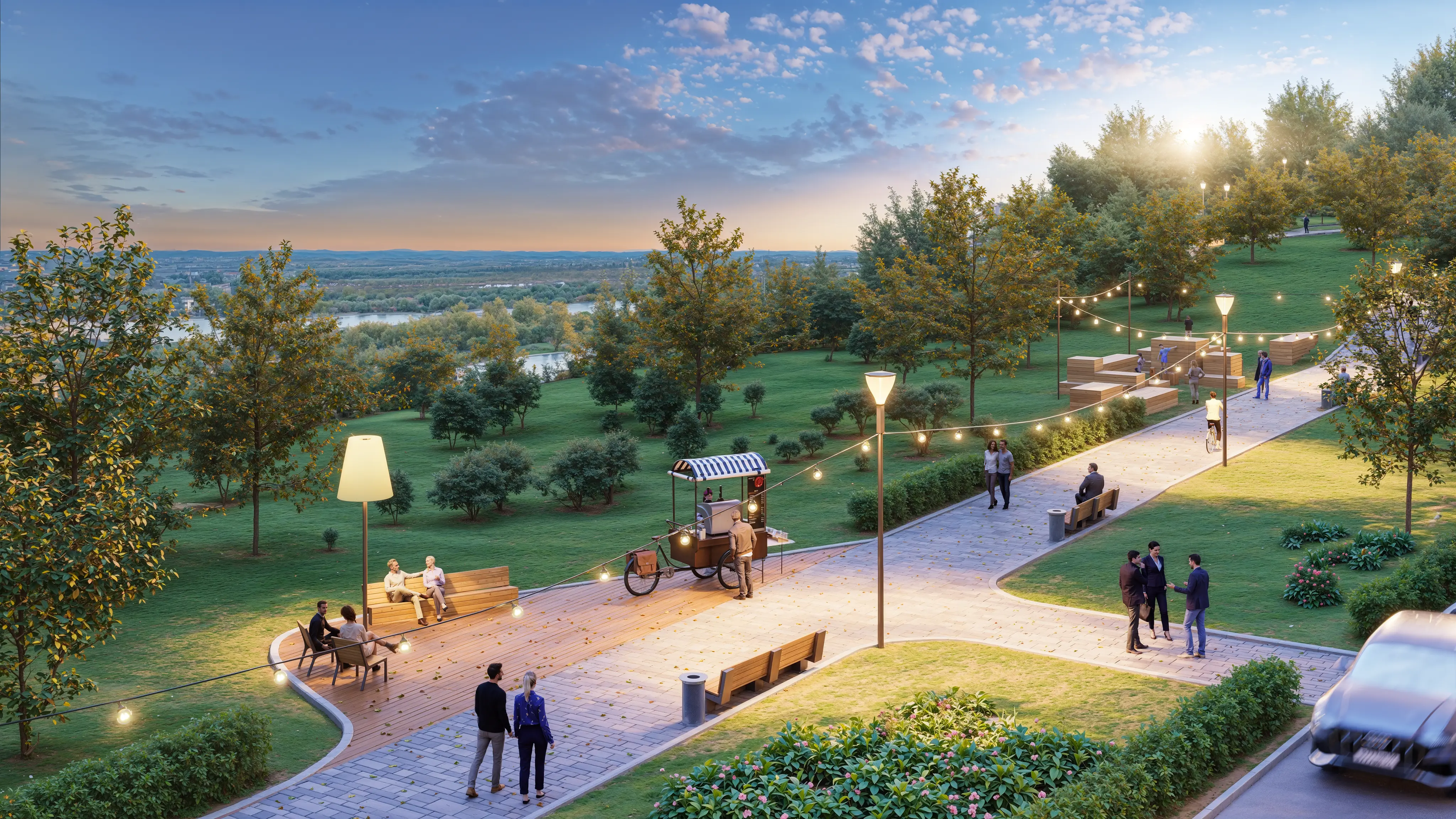 Главной фишкой проекта станет набережная для всех жителей микрорайона, благоустройства настоящего общественного пространства, смотровыми площадками и зонами тихого отдыха. Откроются три видовые точки: